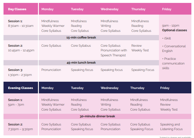 ✅ 午後は実践重視のテーマ別レッスン(会話・発音・プレゼン・職場英語など)