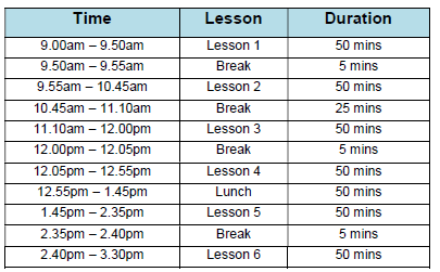 ▷20レッスン(週16.6時間/9:00〜12:55):