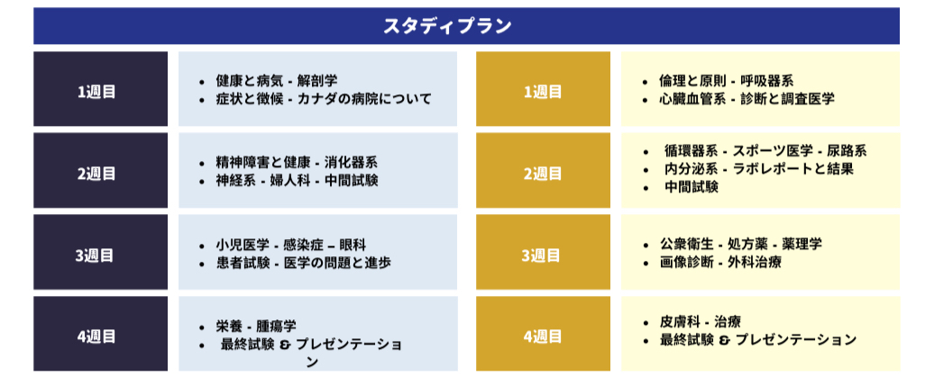 医療英語プログラム 25時間/週:平日 9:00am-14:45pm