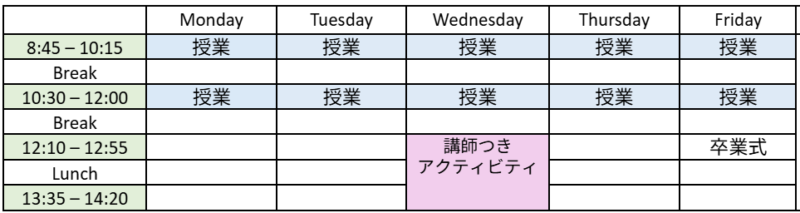 このコースは週1回、講師引率付きの特別アクティビティが含まれるプログラムです。