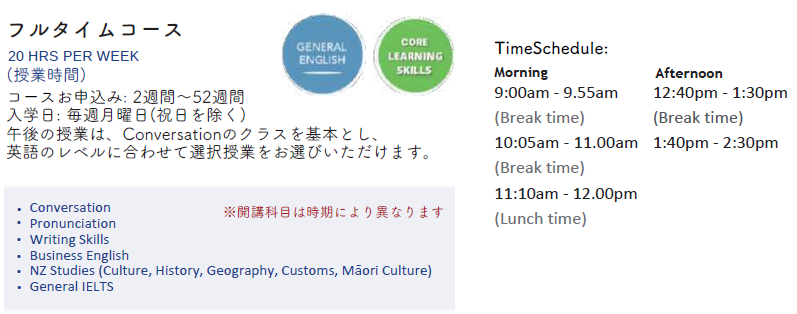 Worldwideの一般英語フルタイムコースは「学び」と「実践」が両立できるカリキュラムが組まれています。