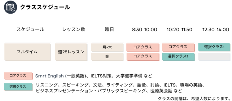 | 対象年齢 | 18歳~30歳 | 英語力 | 一般英語コース:問わず、ワークショップ:一般英語ENGL120以上 |