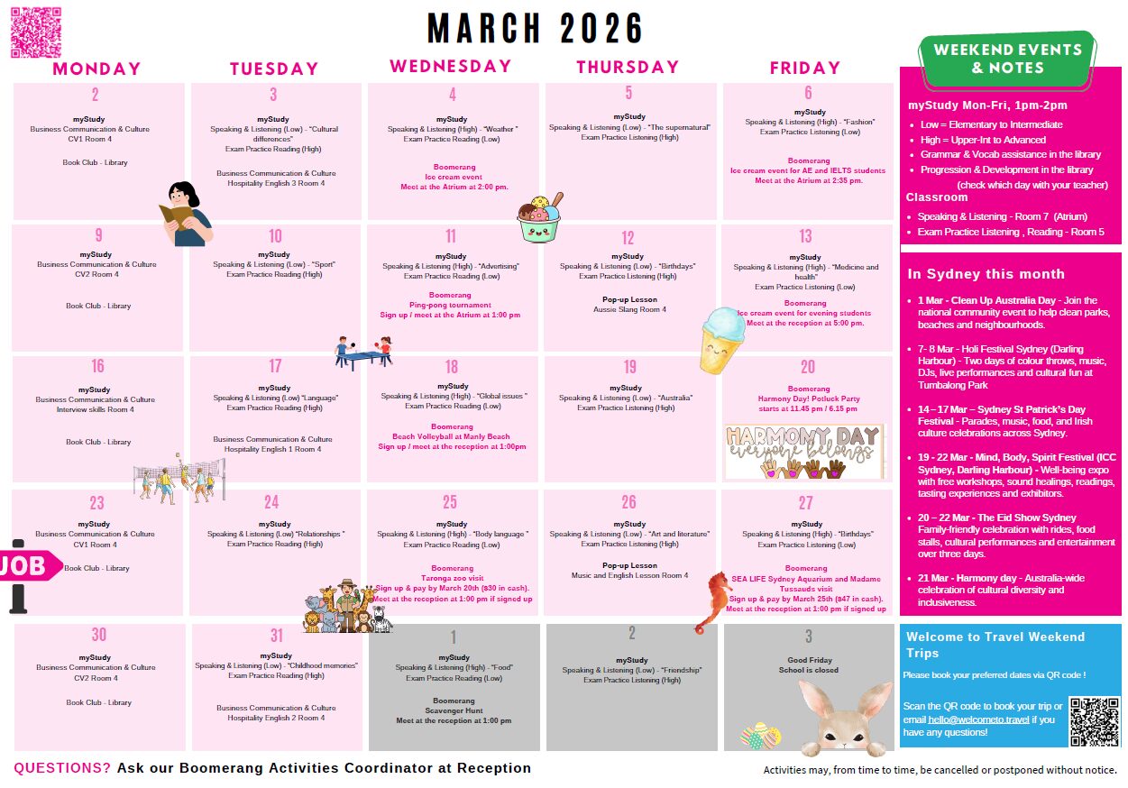 シドニーのベストシーズンといえば夏!シーズン真っ盛りの3月にシドニーで思い切り留学を楽しみませんか? シドニー1の名門校Navitas English🏫で質×量の授業を受けましょう! Navitasは【細かいクラス分け】【放課後のオプショナルコースmy study】が魅力です。 またハイドパークの目の前で景色も抜群な校舎です🍃 また、アクティビティも楽しみたい方にもおすすめ✨ 学校独自のアクティビティに加えてラストリゾートで手配しているアクティビティの案内も可能です🌈 内容盛りだくさんのコース、ぜひシドニーで素敵な思い出を作ってみませんか?