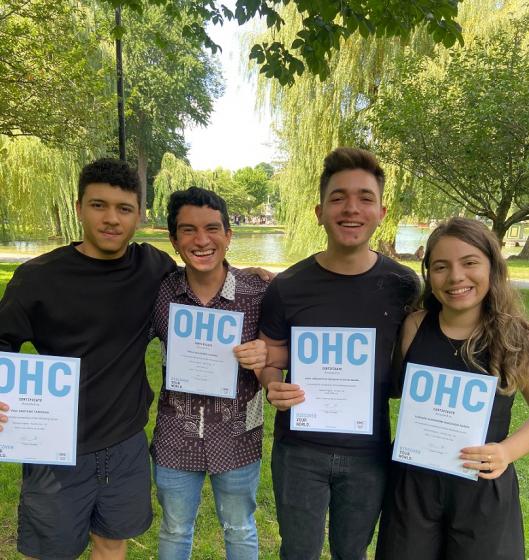 OHCボストン校では、少人数制のクラスで、学生一人ひとりにきめ細やかな指導が行われています。講師陣はフレンドリーかつ経験豊富で、英語力をバランスよく伸ばす実践的なカリキュラムを提供しています。コースは初級から上級まで細かくレベル分けされており、一般英語や集中英語コースに加え、ビジネス英語やIELTS、TOEFLなどの試験対策コースも開講されています。プライベートレッスンや少人数グループでの授業も選択可能です。