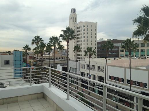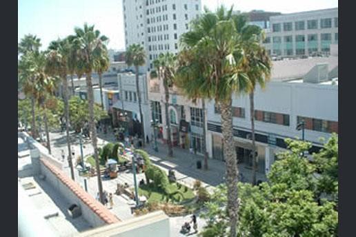 サンタモニカビーチまで徒歩5分、バス停も近く便利な立地です。サンタモニカ・プロムナードどというショッピングストリートの中にあります。ヤシの並木の向こうに美しい夕焼けを臨むサンタモニカは、年間を通じて温暖で快適な気候に恵まれています。