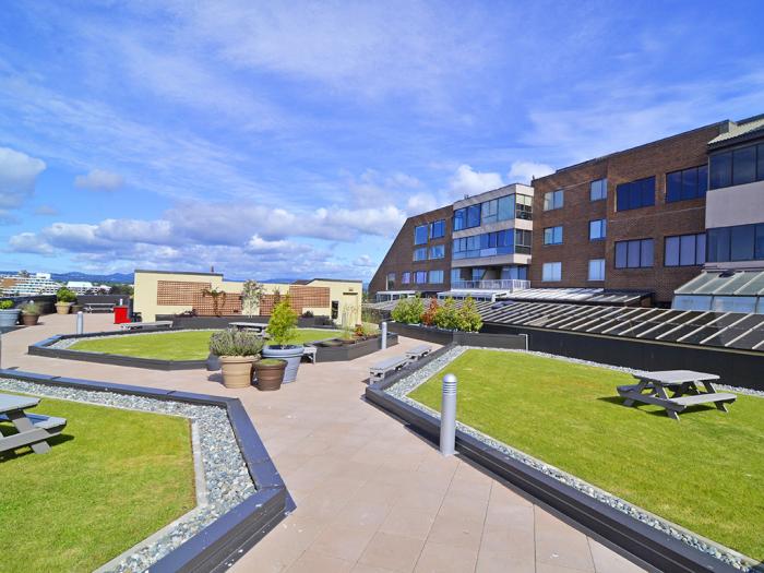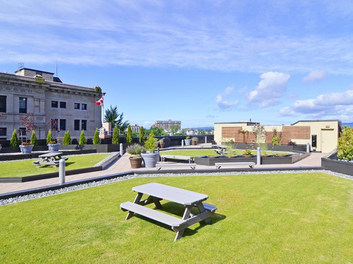 ビクトリアの中心、ガバメントストリートに面した校舎で屋上テラスからは海も山も見ることができます。