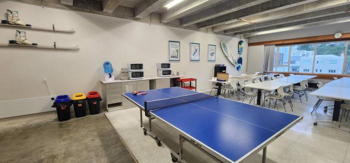 パーマストン ノース校は広々としたキャンパスに15の教室、無料インターネット、学生図書館、調理設備と無料の紅茶とコーヒーを備えた 2 つのキッチンがあります。レクリエーション スペースには卓球台とビリヤード台があります。市内の公園と主要なショッピングおよびレストラン街を見渡すバ、コニーは、クラスメートとリラックスするのに最適です。屋外用家具が備わっているので、学生は授業時間外にリラックスしたり交流したりできます。