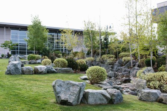 オリンピックマウンテンと美しい海水路に囲まれた場所にあるカレッジキャンパス。シアトル中心地や美術館へのアクセスも容易な立地にあり、アメリカのカレッジライフを支える施設を備えた美しいキャンパスで勉強できます。